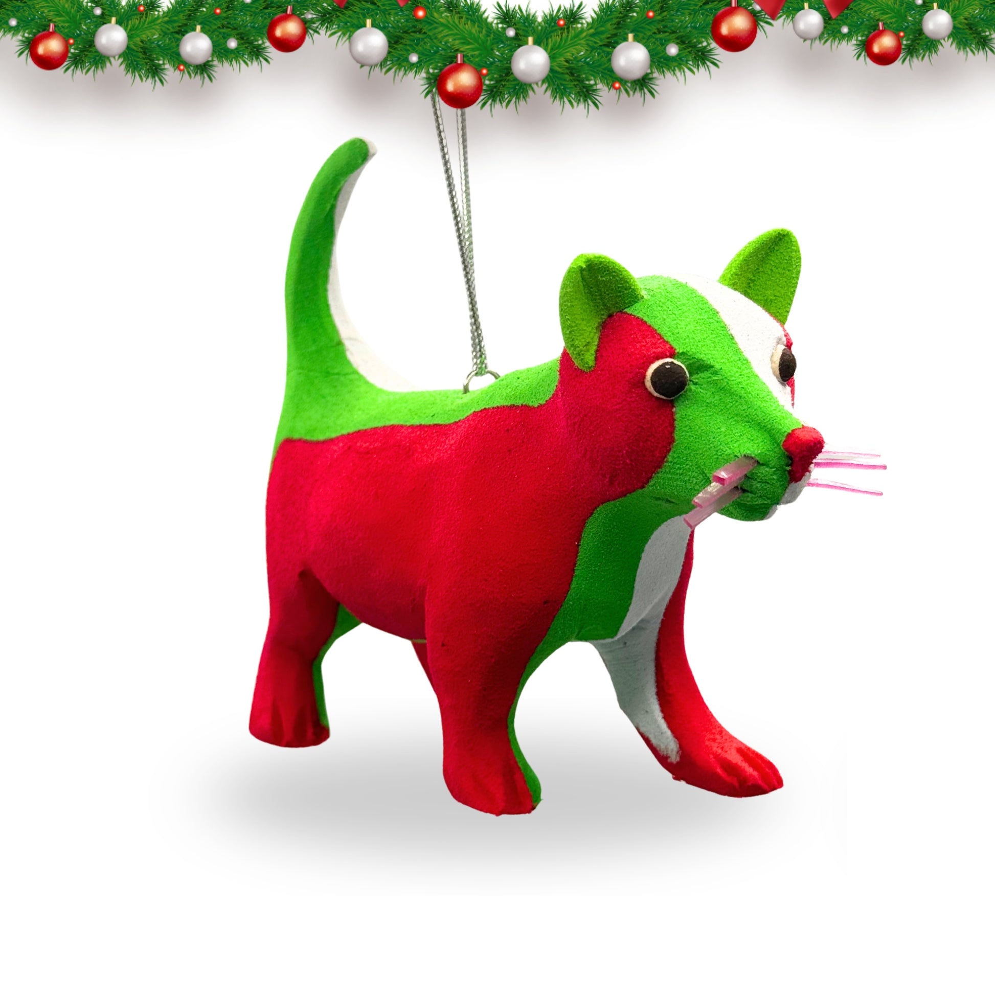 This playful cat ornament is hand-carved in Kenya from upcycled flip-flops. A colorful, sustainable way to celebrate the holidays while supporting ocean conservation and artisan jobs.