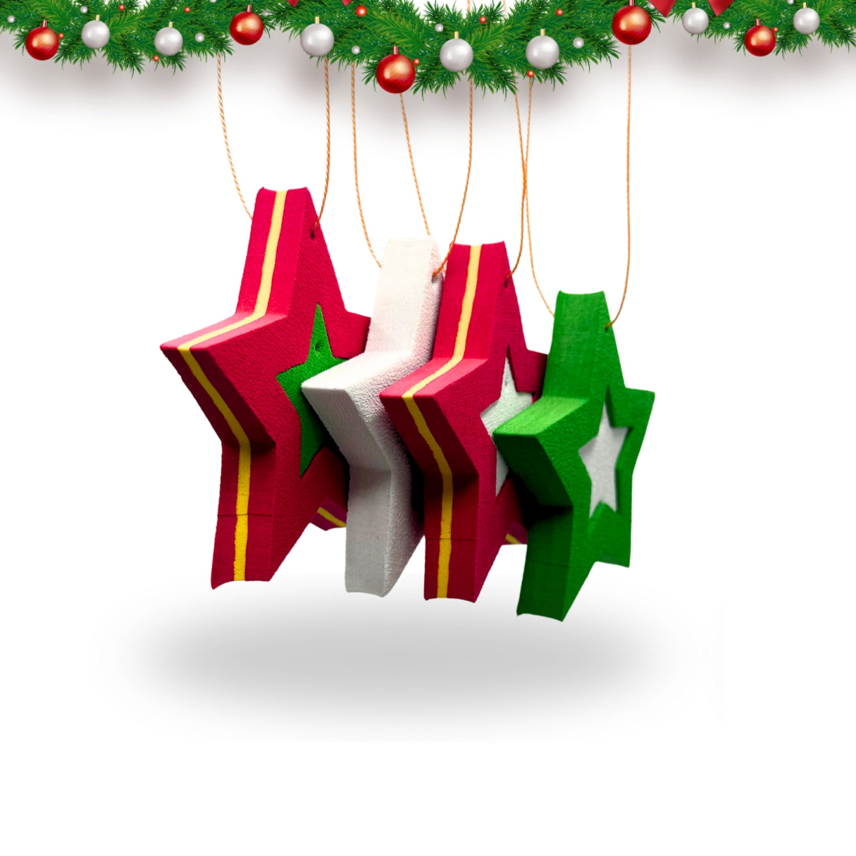 Each ornament in this set is small, light and easy to hang. Most pieces are roughly the size of an iPhone, making them perfect for filling the tree without weighing down the branches. Their soft flip flop material keeps them safe around kids and pets while adding a bright, handmade touch to your holiday decor