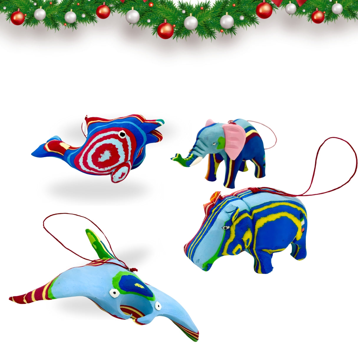Each ornament is hand carved by our artisans, transforming discarded plastic into festive art that sparks conversation and gives back to the planet.