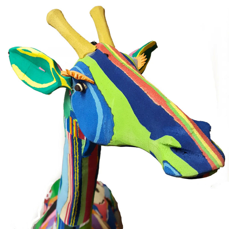 Graceful, towering, and utterly unique, the giraffe stands as a symbol of perspective, intuition, and connection to the natural world. With their watchful eyes and sky-high stature, giraffes teach us to see the bigger picture — a perfect match for our mission at Ocean Sole. Whether placed in a nursery, living room, or garden nook, these upcycled giraffe sculptures bring warmth, joy, and a powerful story of transformation.