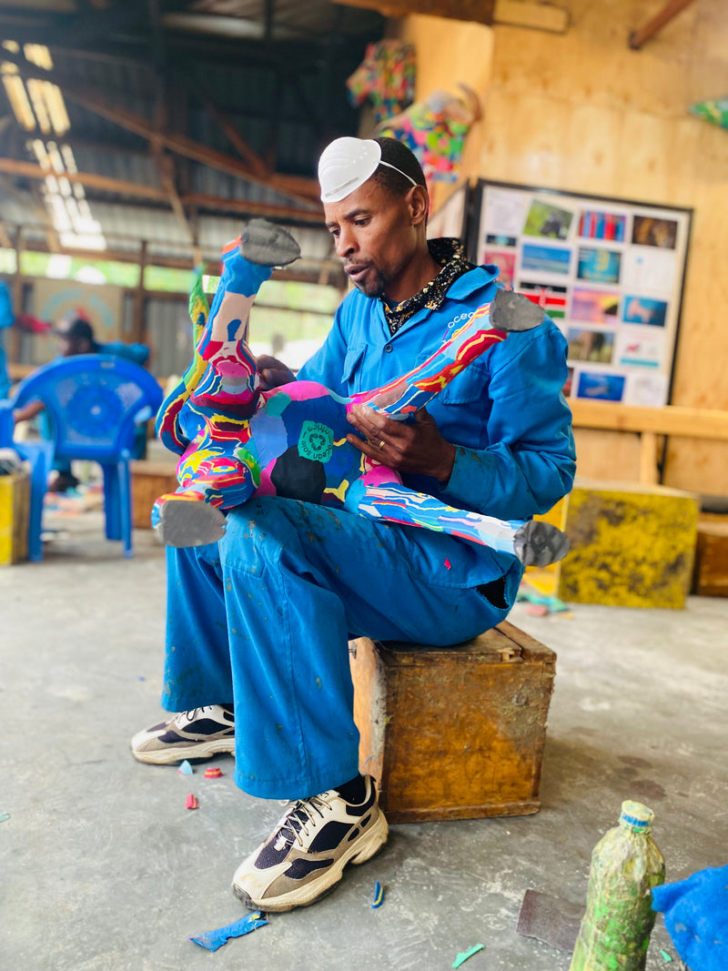 Each sculpture begins its life as a discarded flip-flop — worn, tossed, and often swept into our oceans. We collect it from beaches and waterways, then clean, compress, and hand-carve every piece at our Nairobi workshop. No machines. Just skilled artisans, purposeful design, and a whole lot of love.